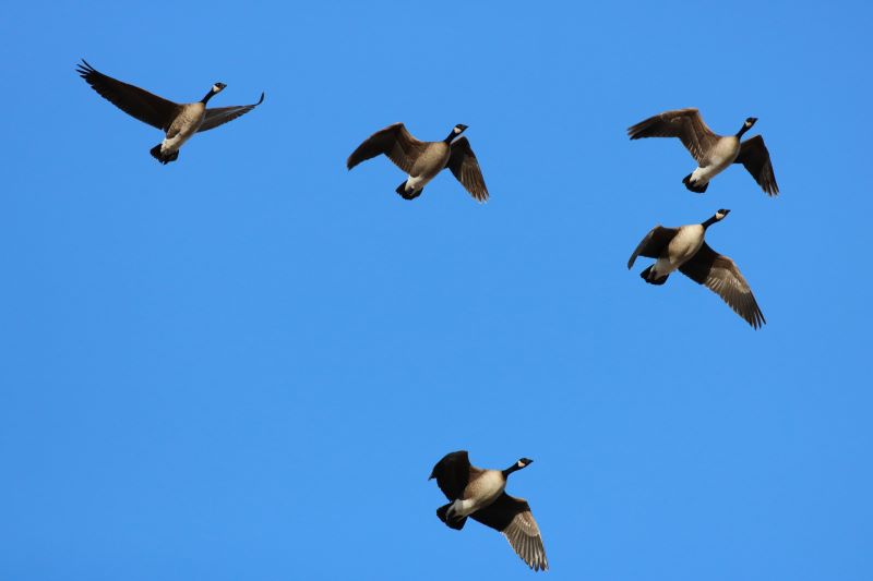 Isn’t this a serene image? Five geese winging their way through blue, blue skies? Aren’t you glad you can view this in the safety and comfort of your home?