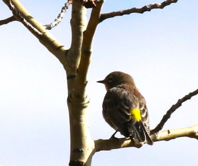 Such a handsome bird. And here’s a Yellow-rumped Warbler that also visited a nearby tree: