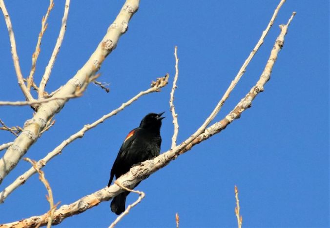I had a lovely solo camping trip in Golden Gate Canyon State Park last week. The weather was pleasant and my site was level, plus there was a peaceful little Nature Trail right across the road that I wandered a couple times. Oddly enough, there weren’t many birds and it was mostly quiet except for the occasional Mountain Chickadee and Common Raven (which I heard several times but never spotted). I had high hopes for bird sightings since on the first afternoon I saw a White-breasted Nuthatch on a tree trunk near the restroom. That was my one and only nuthatch sighting although I had two encounters with a pair of Gray Jays. I’m not sure it was the same pair both times, but one flew directly at me near my campsite then landed in the tree right next to me, followed by another jay. And the next morning as I paused outside the restroom to put on my mask, a Gray Jay flew right (like, right) in front of me and into the building wall as if it thought it could perch there. Then it flew back into the closest tree where another jay waited. I never saw them again, but spent some time pondering whether they were trying to tell me something or maybe thought I was a kindred spirit in my gray fleece jacket that’s the same shade as their feathers.