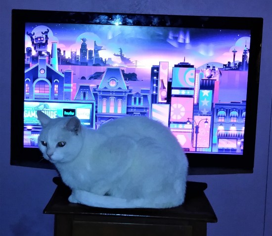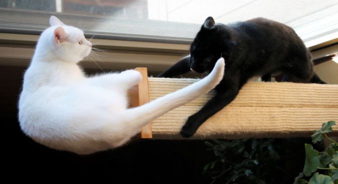 Yesterday (Saturday) morning, just as Wildebeest and I returned from walking Emma, there was another raucous uproar in the neighbor’s yard. This time, the fluffy white cat sat calmly (no bird in mouth) as the parent jays dive-bombed it. Again, I ran at the cat and chased it away. After another no-answer when I rang the cat’s home doorbell, I went home and wrote a very civil note, explaining the situation and asking that the cat be kept inside.