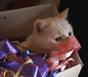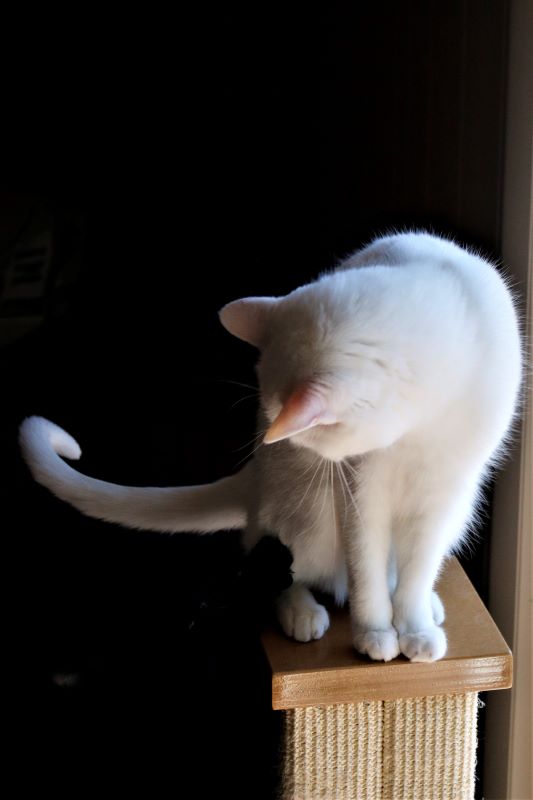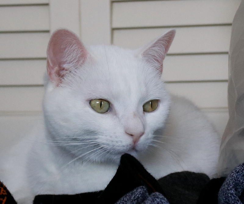 One day last week, son Wildebeest and I had our cameras out to practice photographing a black cat and a white cat at the same time. It’s difficult to land on the correct settings that will allow the black cat to have definition without also blowing out the white cat’s fur. This photo is proof of my ongoing struggle.
