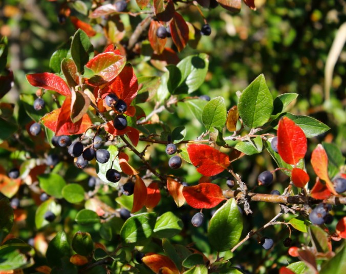 I took this photo almost exactly one year ago, a fair representation of what the contoneaster in my yard looks like right now. So why didn’t I just step outside to get a current picture? Because it’s smoky. Still. And I don’t want my lungs burning. Again.