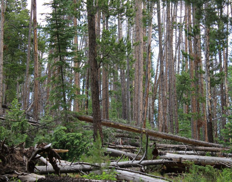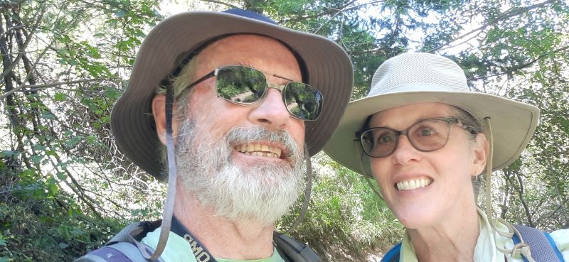 I made a quick U-turn and drove back another mile or so to a turnoff our neighbor had alerted us to. He’d said there was a lake back there where we could hike. Well, it turns out that lake is now off-limits to the public and there were several NO TRESPASSING signs posted about but there was a parking area for another trailhead. So, off we went.
