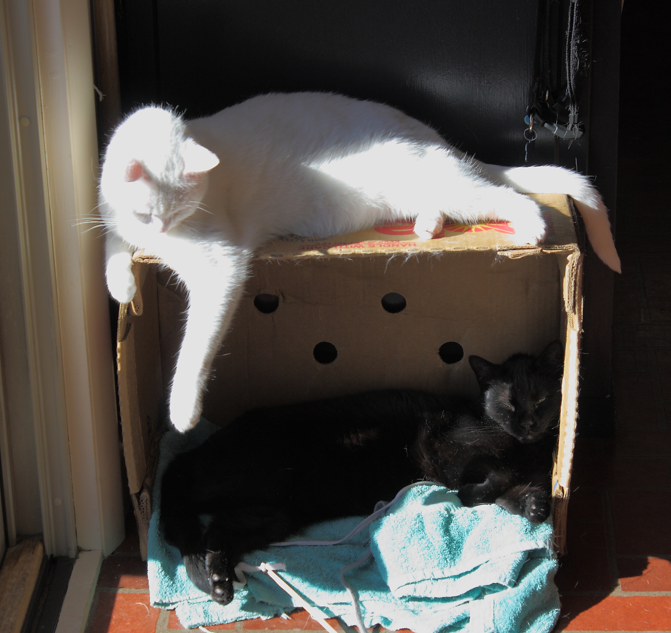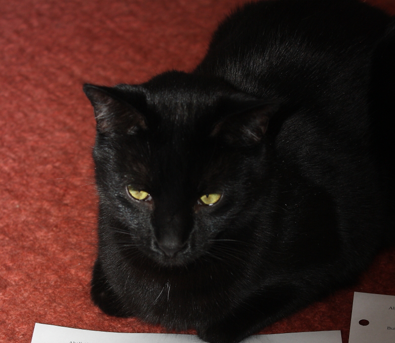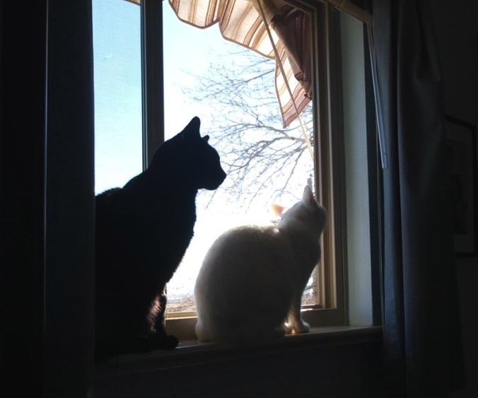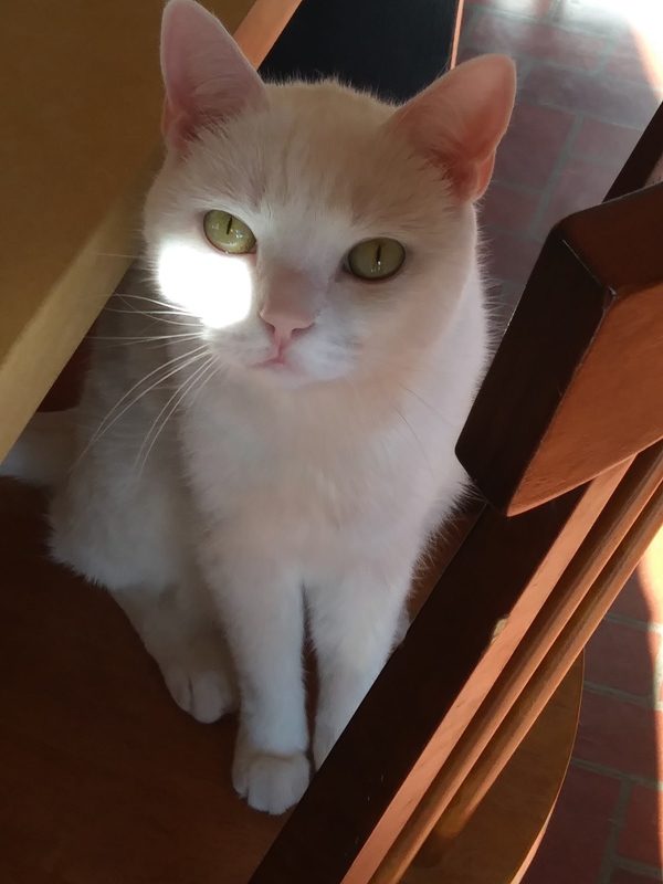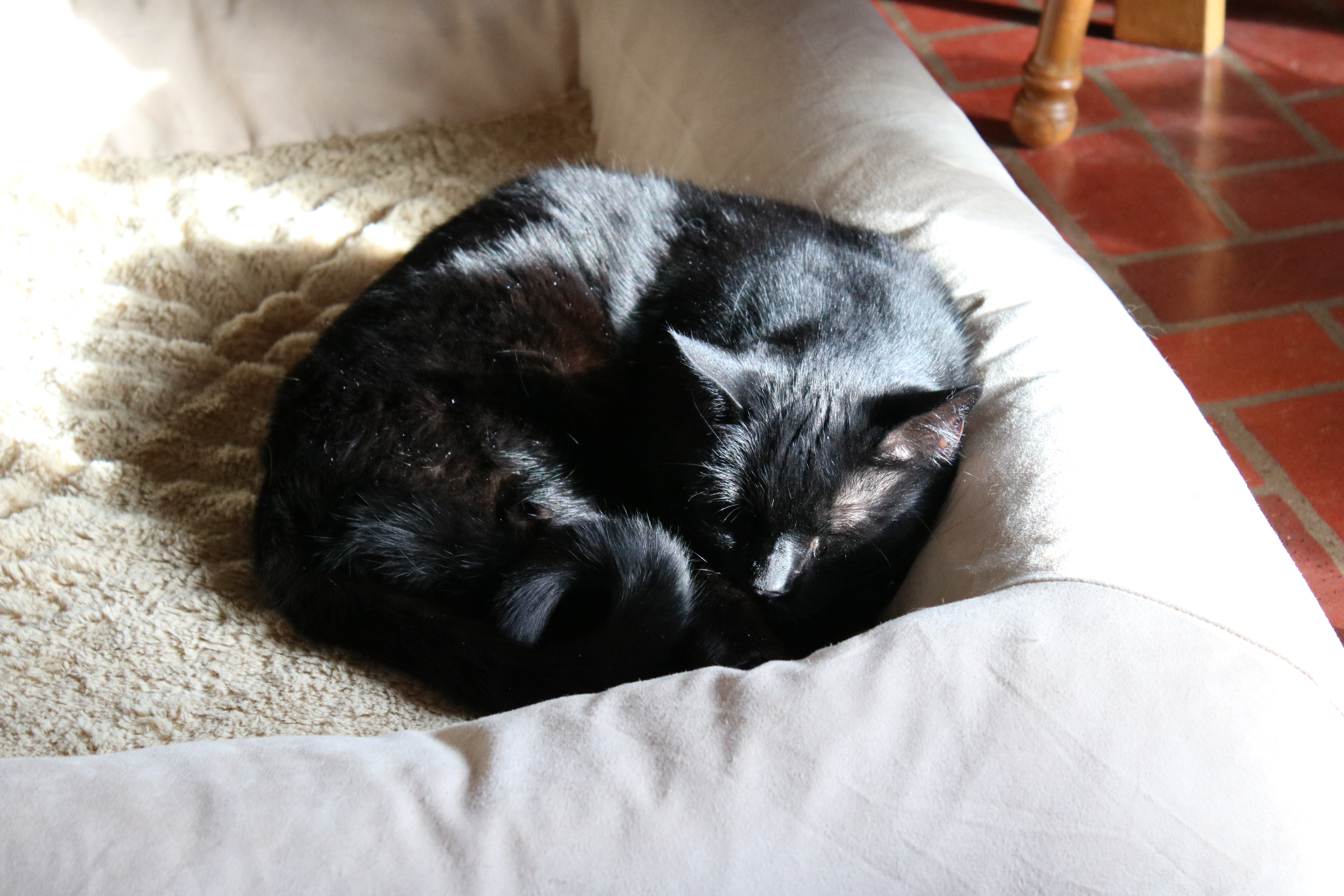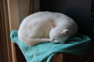 Well, Wildebeest and Little Miss headed home this morning and an hour or so after they’d left, Loki sat outside my writing room door and cried. I let him in and draped him over my shoulder. He immediately rubbed his head against my cheek and purred. And purred. And purred. As I held him, my frustration evaporated. I hadn’t consulted him before inviting a strange dog into our home and I have no idea what transpired in his life before we adopted him. Maybe he’d once been terrorized by a furry football. In any case, our reconciliation lasted about ten minutes and then Loki wanted to get down. I let him out of my writing room and got back to work. I’m guessing my handsome and loving kitty went to take another nap.