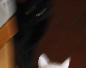 Well, Little Miss is a very small dog. She’s essentially a furry football. Plus, she’s ten years old and more interested in snuggling and naps than chasing anyone. Instead it was Loki, my shy cat who’s afraid of birds and