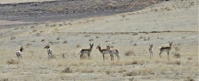 However, we were gifted with antelope sightings. This small herd ran away from us as we sat idling on the road way far away from them. It seems antelope do not take any chances and will bolt at the first sign of danger.