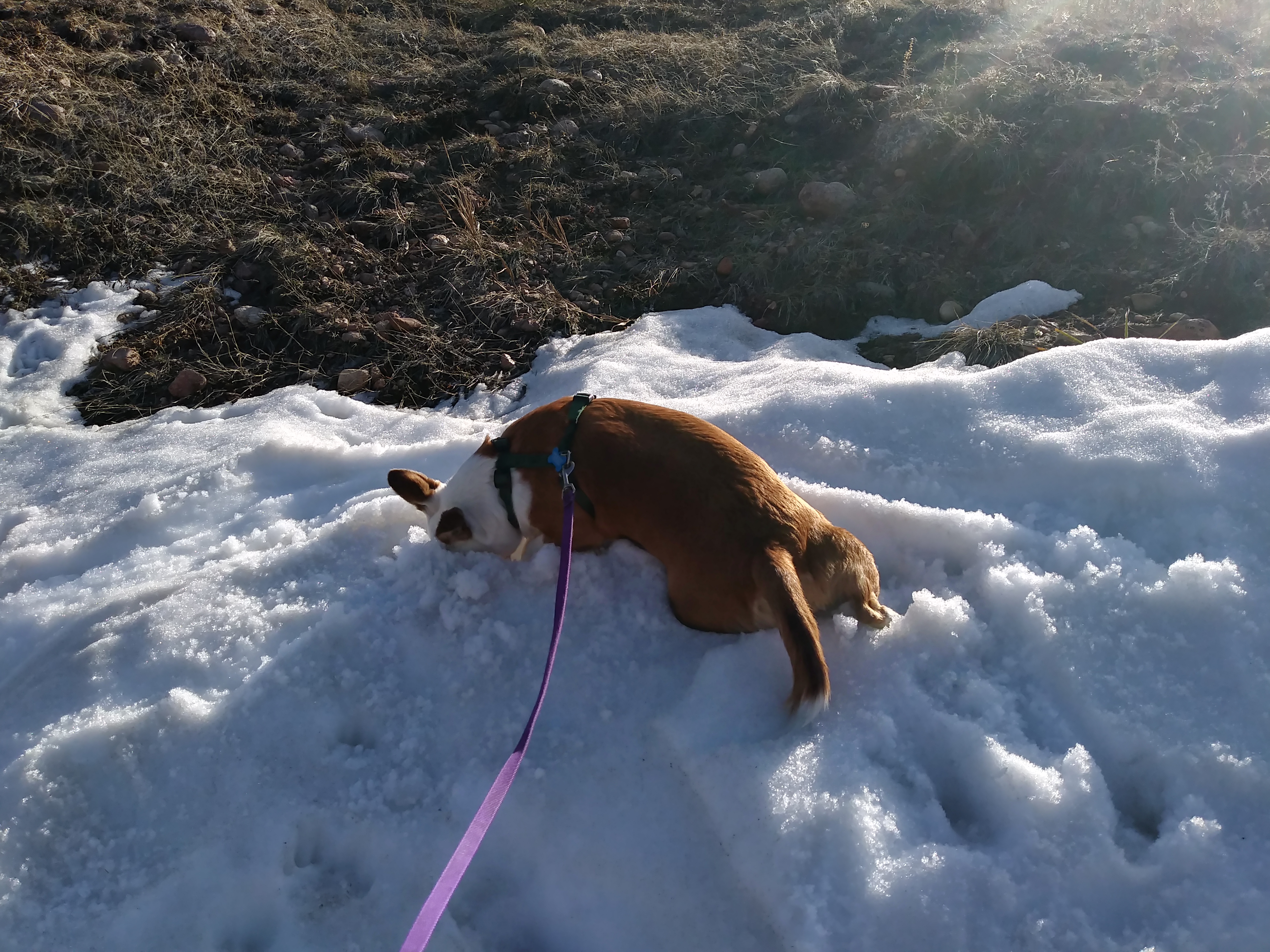 I laughed as she scooped snow with her snout and dug holes with her paws and slid down the slope on her tummy.