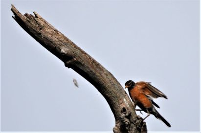 Friday Haiku August 28, 2020August 28, 2020 / Tracy Abell American Robin. Rock Island, IL. June 4, 2020. Could be take-off or coming in for a landing that feather’s no clue