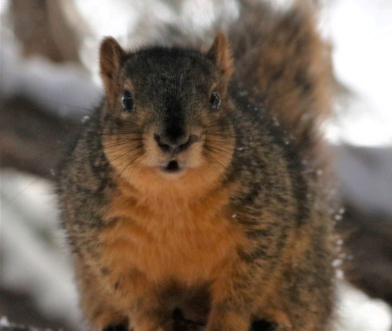 This squirrel and I had multiple face-offs the other day over the peanut feeder that keeps the chickadees, nuthatches, and bushtits happy. I don’t mind squirrels snacking on the bird food now and again, but I do object to them eating ALL the peanuts.