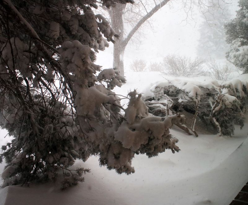 Yesterday my plan to spend the day doing revisions was upended by a snowstorm that began at about 10:00 in the morning and continued for twelve hours. By the time it ended, we’d received at least 17 inches of snow (it was HEAVY so there was compression). This was the view out the kitchen window right after sunrise this morning.