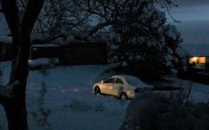 A neighbor from farther up the hill made a crucial error when driving up our street on his way home: he stopped to allow a struggling vehicle to get past on the barely plowed street and then was unable to get going again. His vehicle slid to the gutter and my immediate neighbors and I spent a long time trying to dig them out, but the road got too slick beneath the tires and there was no traction. He ended up abandoning the vehicle overnight.
