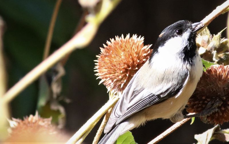 Magpies are common around here yet they never fail to lift my spirits. Equally common are the bright, cheery sunflowers smiling in my yard and throughout the neighborhood. These, too, always bring a smile. And when that sunflower sighting includes a Common Checkered-Skipper?