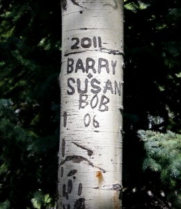 I’d forgotten about this evidence of your idiocy until just now when I revisited the photos from my July camping trip in the Uncompahgre National Forest. The aspen groves were absolutely glorious. Why did you think anyone would care one iota that you’d been there? Because I’ve got news for you–Barry, Susan, and Bob–we don’t.