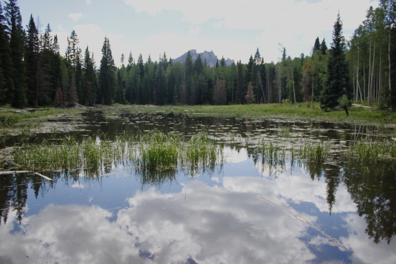Despite the scattered evidence of beavers’ handiwork, I recall the tranquility of this spot. We didn’t see any beavers that day, but their lodge is visible where the water comes to a V at the center of this not-great photo.