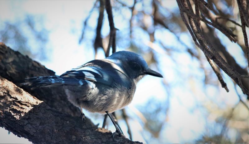 This isn’t a great photo, but I resonate with its vibe. Grumpy-looking scrub jay hunkered down in a hideaway sheltered by green foliage. I spent lots of my childhood seeking these same kinds of spaces, whether I was grumpy or not. Unlike this bird, I’d usually have a book and peanut butter sandwich which always made everything seem better. Unfortunately, this picture was taken a year ago so it’s too late to offer a book or snack . . .