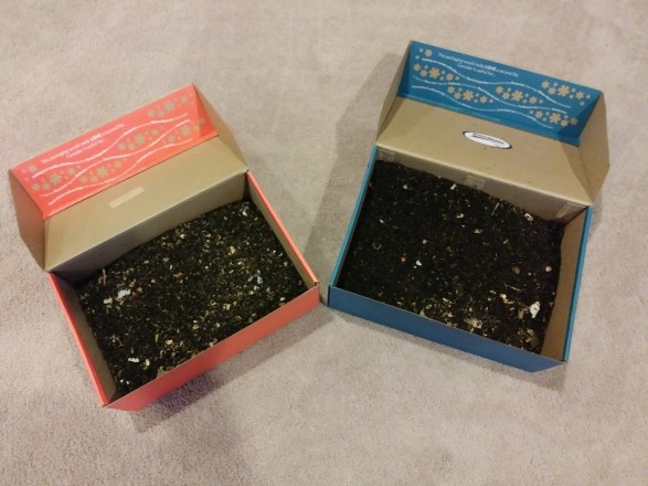 The worms are working away in the damp shredded paper, etc., beneath a damp “blanket” of newspaper. They’re eating our kitchen scraps and their bedding. They’re helping me feel less horrified about my footprint on this planet.